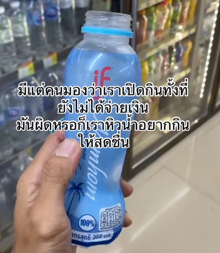 กลายเป็นไวรัลขึ้นมาทันที หลังผู้ใช้ tiktok รายหนึ่งได้โพสต์เล่าเรื่องการเจ้าร้านสะดวกซื้อ หยิบเครื่องดื่มมาดื่ม แล้วค่อยไปจ่ายเงินทีหลัง ระบุว่า มีแต่คนมองว่าเราเปิดกินทั้งที่ยังไม่ได้จ่ายเงิน มันผิดหรอก็เราหิวน้ำอยากกินให้สดชื่น ซึ่งหลังจากที่ได้โพสต์คลิปและข้อความดังกล่าวออกไป เรื่องนี้กลายเป็นมีคนมาตำหนิ พร้อมตั้งคำถามว่า ทำไมถึงเป็นแบบนี้ได้ และมีคนดู 3 แสนครั้ง