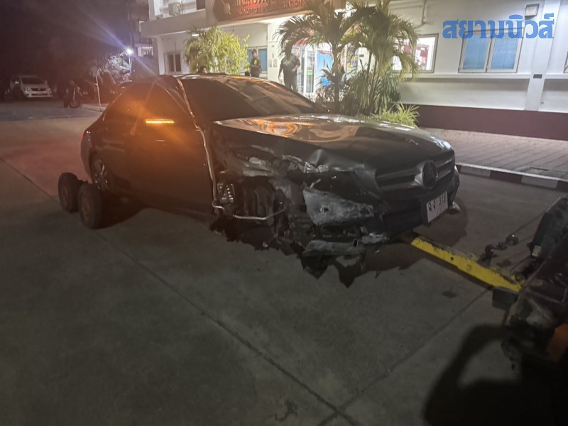 เมื่อเวลา 01.00 น. วันนี้ 12 ม.ค. 69 ร.ต.ท. บูรพา ใจหาญ รอง สว (สอบสวน) สถ.หนองปรือ สถ.หนองปรือ อ.บางละมุง จว.ชลบุรี ได้รับแจ้งเหตุเก๋งหรูเสียชนกำแพงหมู่บ้านเซนสิริ พัฒนาการ 4 ม.6 ต.หนองปรือ อ.บงาละมุง จ.ชลบุรี หลังรับแจ้งจึงประสารเจ้าหน้าที่ตำรวจเร่งตรวจสอบ