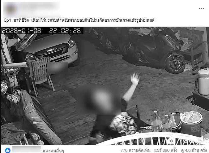 โดยเป็นภาพวงจรปิดจับภาพเหตุการณ์ที่มีวัยรุ่นชายคนหนึ่งเกิดอาการช็อกแล้วเกิดการชักเกร็ง ก่อนที่จะวูบหมดสติ หงายหลังร่วงลงจากเก้าอี้ จากนั้นมีกลุ่มเพื่อนและผู้ที่อยู่ในเหตุการณ์ช่วยกันหามวัยรุ่นชายคนดังกล่าวส่งโรงพยาบาล คลิปเหตุการณ์ดังกล่าวถูกแชร์ต่อเป็นจำนวนมากในโซเชียล มีผู้คนเข้ามาดูถึง 4.6 ล้านครั้ง และเป็นที่วิพากษ์วิจารณ์เป็นอย่างมาก ทั้งนี้ผู้โพสต์ได้ระบุข้อความว่า นาทีชีวิต เตือนไว้นะครับสำหรับพวกชอบกินโปร เกิดอาการชักเกรงแล้ววูบหมดสติ ต่อมาผู้โพสต์อัปเดตเพิ่มเติมว่า ตอนนี้อาการปลอดภัยแล้ว
