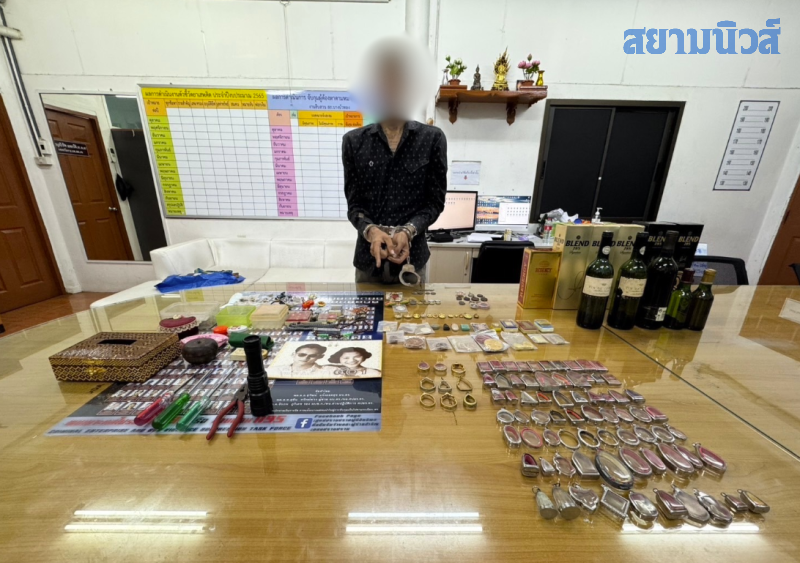 เมื่อเวลา 10.30 น.วันที่ 14 ม.ค.69 ที่สภ.บางบัวทอง พ.ต.อ.ธรรศกร ก้อนทอง ผกก.สภ.บางบัวทอง พ.ต.ท.นเรนทร วีระ รอง ผกก.สส.สภ.บางบัวทอง พร้อมเจ้าหน้าที่ตำรวจชุดสืบสวน สภ.บางบัวทอง ร่วมกันจับกุมตัวนายเอ (นามสมมติ) อายุ 37 ปี และนาย บี (นามสมมติ) อายุ 19 ปี พร้อมของกลาง 38 รายการ ประกอบด้วย กรอบพระไมครอน จำนวน 99 กรอบ, พระเหรียญ จำนวน 24 องค์, พระผง จำนวน 23 องค์, พระรูปหล่อ ขำนวน 14 องค์, ชุดเหรัยญพระพุทธโสธร 1 กล่อง, ตะกรุด จำนวน 3 ดอก, เครื่องราชอิสริยาภรณ์ , ธนบัตรที่ระลึก, เหรียญสกุลต่างประเทศ และไทย จำนวน 17 เหรียญ, เครื่อประดับเข็มกลัดทอง-เงิน จำนวน 14 ชิ้น, ต่างหู จำนวน 10 ชิ้น, นาฬิกาข้อมือ, สร้อยข้อมือ, สร้อยคอ, กล่องบรรจุพระ และเครื่องประดับ, สุราชนิดต่างๆ 77 ขวด พร้อมอุปกรณ์ในการงัดแงะ จึงแจ้งข้อกล่าวหาว่า ร่วมกันลักทรัพย์ในเคหสถาน โดยทำลายสิ่งคุ้มครองป้องกันทรัพย์ หรือรับของโจร