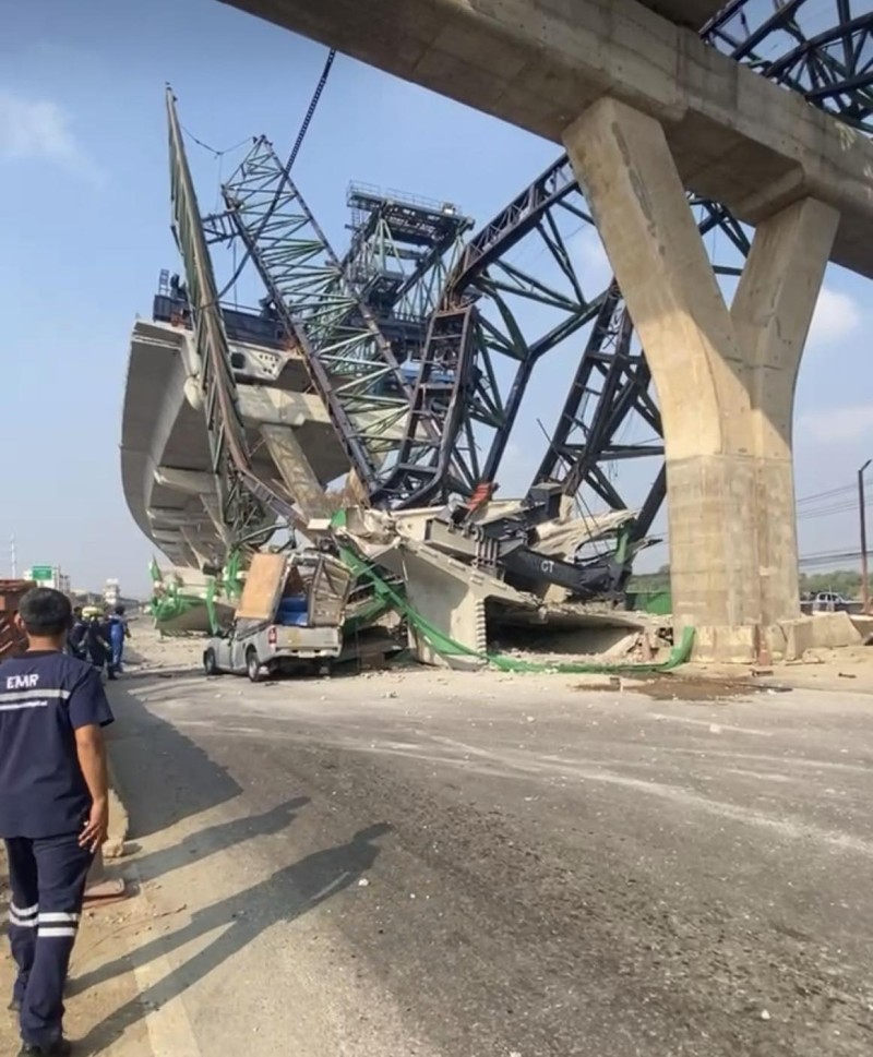 เมื่อเวลา 09.15 น. วันที่ 15 ม.ค.69 เกิดเหตุเครนก่อสร้างถล่ม บริเวณถนนพระราม 2 ขาออก พื้นที่จ.สมุทรสาคร ก่อนขึ้นสะพานข้ามแม่น้ำท่าจีน