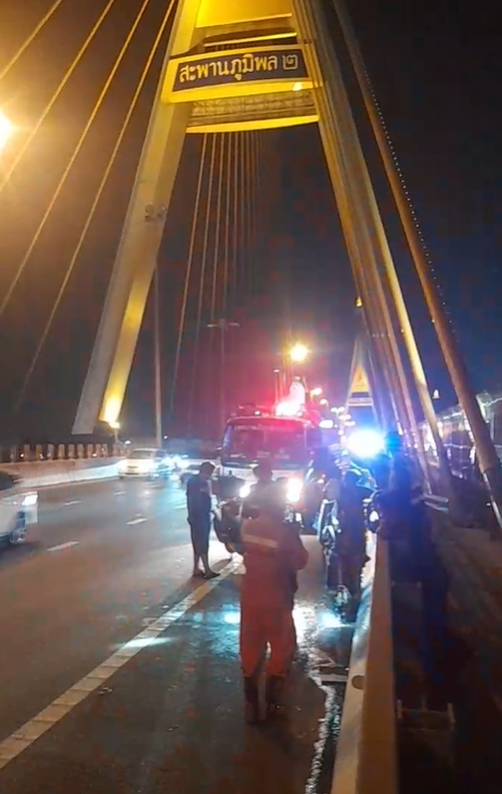 +จากกรณีเกิดเหตุไฟลุกไหม้บริเวณเสาตอม่อสะพานภูมิพล 2 ฝั่งถนนปู่เจ้าสมิงพราย ตำบลปู่เจ้าสมิงพราย อำเภอพระประแดง จังหวัดสมุทรปราการ เมื่อช่วงค่ำของวันที่ 15 มกราคม 2569 ที่ผ่านมา โดยคลิปวิดีโอที่ชาวบ้านบันทึกไว้ได้เผยให้เห็นว่า เปลวไฟเริ่มลุกไหม้จากบริเวณโคนเสาตอม่อ ก่อนลุกลามไปติด ท่อยางระบายน้ำของโครงสร้างสะพาน ส่งผลให้แสงเพลิงพวยพุ่งรุนแรงในแนวเดียวกับเสาตอม่อ สร้างความแตกตื่นแก่ผู้พบเห็นเป็นวงกว้าง พร้อมทั้งเกิดกระแสวิพากษ์วิจารณ์และตั้งข้อสงสัยถึงสาเหตุของเหตุการณ์ที่เกิดขึ้น