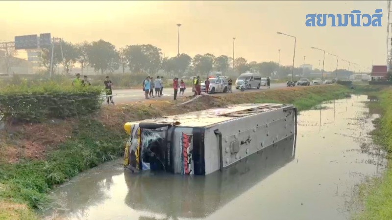 ที่เกิดเหตุพบรถบัสรับส่งพนักงานหมายเลขทะเบียนป้ายเหลือง 30-2183 พระนครศรีอยุธยา ซึ่งใช้รับส่งพนักงานภายในนิคมอุตสาหกรรมโรจนะ 1 พลิกตะแคงตกลงไปในคูน้ำข้างทาง หลังพุ่งชนเสาไฟฟ้าส่องสว่าง ส่งผลให้มีผู้ได้รับบาดเจ็บรวม 14 ราย เป็นพนักงานหญิง 12รายชาย 1 ราย และคนขับรถบัสชาย 1 รายต่าง ปีนออกทางหน้าต่าง ช่วยเหลือตนเอง แล้วมายืนอยู่บนตัวรถบัส เพื่อขอความช่วยเหลือ