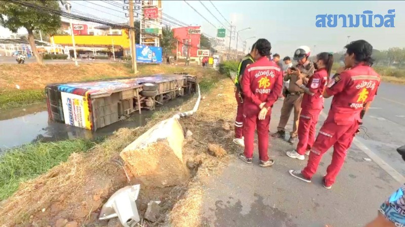 ด้านนายปัญญา ชูมณี เจ้าหน้าที่หน่วยกู้ภัยอยุธยา เปิดเผยว่า หลังรับแจ้งเหตุในช่วงเช้า ได้เดินทางเข้าตรวจสอบพบรถบัสอยู่ในสภาพพลิกตะแคงในคูน้ำ จึงเร่งเข้าช่วยเหลือผู้บาดเจ็บซึ่งเป็นพนักงานรวม 14 ราย อาการบาดเจ็บเล็กน้อย และนำส่งโรงพยาบาลอย่างปลอดภัย