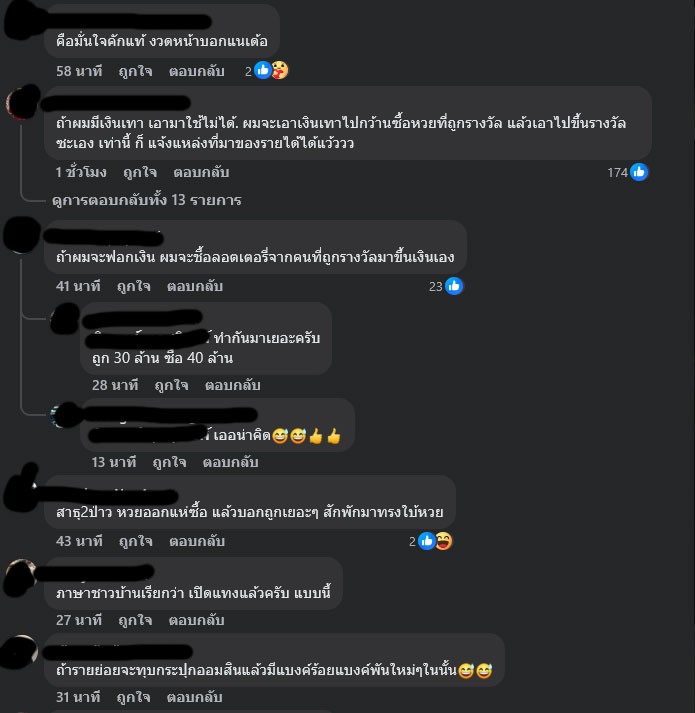 บางคอมเมนต์ถึงขั้นโยงไปถึงประเด็น “เจ้ามือ–วงใน–หวยล็อก” ทำให้ดราม่าลุกลามหนัก มีทั้งเสียงเรียกร้องให้ตรวจสอบ และเสียงสวนกลับว่าคนไทยแพ้ไม่ได้ พอเห็นคนอื่นได้ดีก็หาว่าโกง