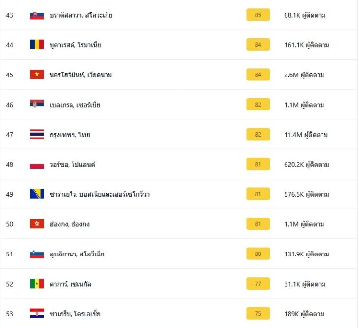 เมื่อวันที่ 19 มกราคม เว็บไซต์ iqair.com จัดอันดับเมืองใหญ่ที่มีมลพิษมากที่สุด ในเวลา 07.00-08.00 น. พบว่าประเทศไทยอยู่ในอันดับ 47
