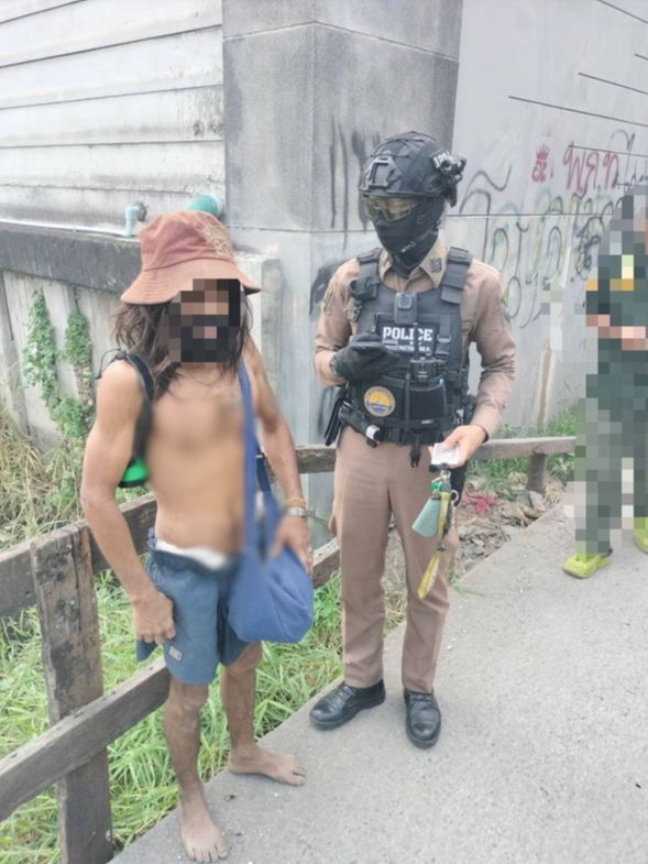 จากการตรวจสอบพบว่า ชายคนดังกล่าวมีสภาพผมเผ้ายุ่งเหยิง ไม่สวมเสื้อ เดินเท้าเปล่า และมีพฤติกรรมเข้าข่ายน่าสงสัย เจ้าหน้าที่จึงเข้าตรวจค้นและสอบถามตามขั้นตอนปกติ ก่อนจะเกิดเหตุไม่คาดคิด เมื่อพบว่าชายในกระเป๋าพกพา บัตรประจำตัวข้าราชการตำรวจ ระบุยศ ร้อยตำรวจเอก หรือ ผู้กอง ทำให้เจ้าหน้าที่ถึงกับตกตะลึง