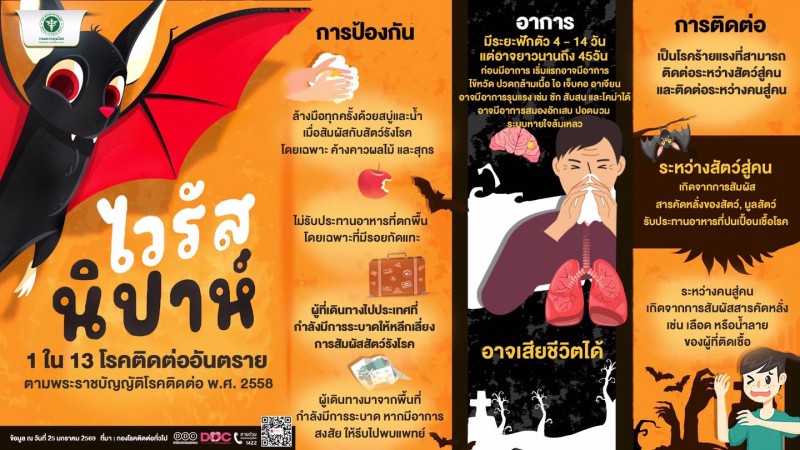 ไวรัสนิปาห์ 1 ใน 13 โรคติดต่ออันตราย ตามพระราชบัญญัติโรคติดต่อ พ.ศ. 2558 รู้ทัน ไวรัสนิปาห์ ภัยจากสัตว์สู่คน ที่ต้องระวัง!