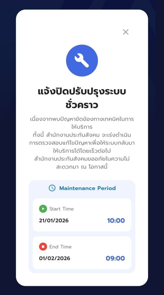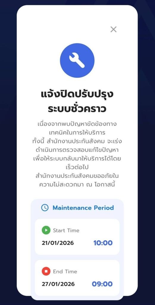 วันที่ 27 มกราคม 2569 สำนักงานประกันสังคม ประสบปัญหาการให้บริการแอพพลิเคชั่น SSO Plus อย่างต่อเนื่อง หลังจากปิดปรับปรุงระบบชั่วคราวตั้งแต่วันที่ 21 มกราคม โดยอ้างว่าพบปัญหาขัดข้องทางเทคนิค และแจ้งว่าจะกลับมาเปิดใช้งานในวันที่ 22 มกราคม ก่อนจะเลื่อนเป็นวันที่ 27 มกราคม