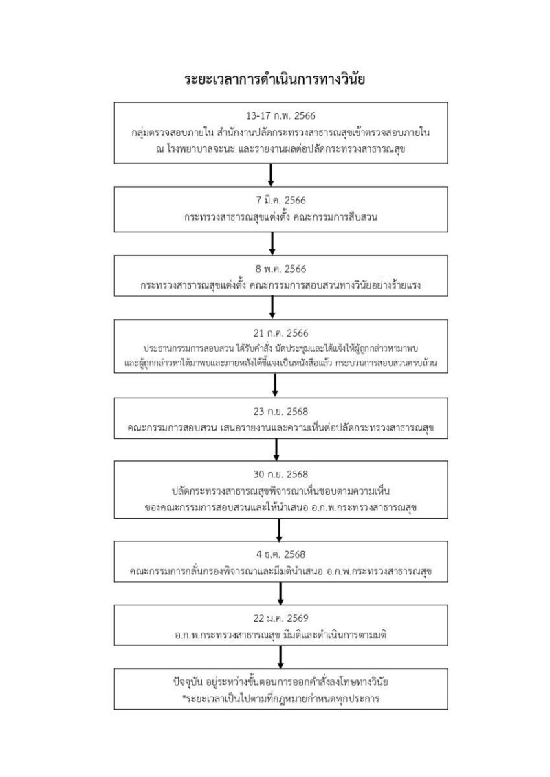 แต่อย่างไรก็ตามก่อนเรื่องเข้าที่ประชุม อ.ก.พ.กระทรวงสาธารณสุข จะมีคณะกรรมการกลั่นกรอง กลั่นกรองก่อนในวันที่ 4 ธ.ค. 2568 ต่อมาวันที่ 22 ม.ค. 2569 จึงมีการประชุม อ.ก.พ. กระทรวงสาธารณสุข และมีการนำเรื่องนี้เข้าพิจารณา เพื่อมีมติว่าจะเป็นไปในทางใด จะเห็นว่าทุกอย่างเป็นไทม์ไลน์ปกติตามขั้นตอนกฎหมาย