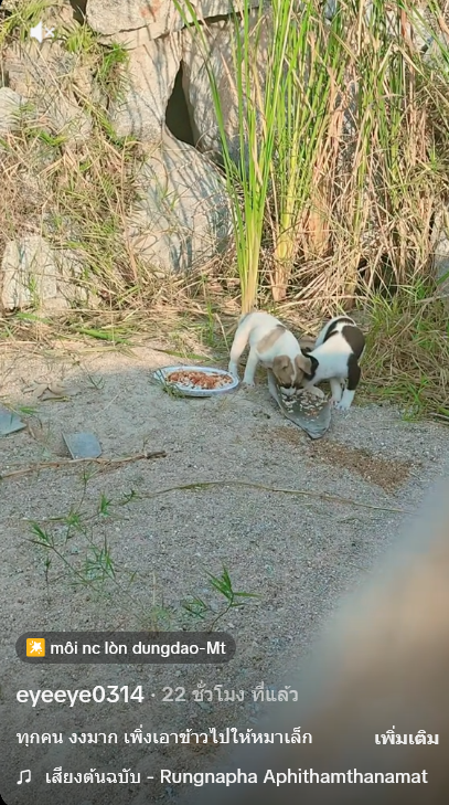 ภายในคลิปเผยให้เห็นพื้นที่รกทึบ มีหญ้าขึ้นสูง พบทั้งธนบัตร กระเป๋าสตางค์ และลอตเตอรี่ตกอยู่บนพื้น ขณะที่ลูกสุนัขกำลังกินข้าวที่นำมาให้อย่างเอร็ดอร่อย