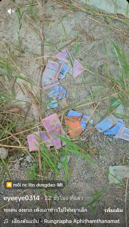 กลายเป็นไวรัลขึ้นมาทันที หลังผู้ใช้ tiktok รายหนึ่งชื่อ @eyeeye0314 ได้โพสต์คลิปเหตุการณ์ชวนประหลาด หลังนำข้าวไปให้สุนัขจรจัดในพื้นที่ป่าห่างไกลผู้คน แต่กลับพบธนบัตรไทยจำนวนมากตกกระจัดกระจายอยู่บริเวณที่สุนัขอาศัยอยู่