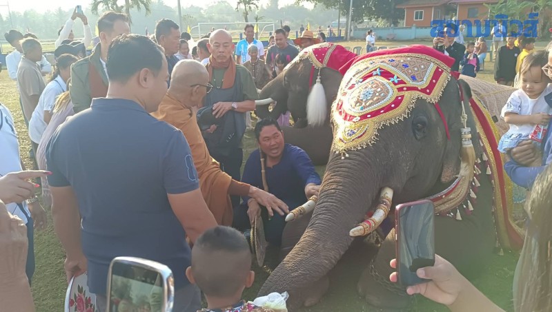 ทั้งนี้ หลวงพ่อสายทอง เตชะธัมโม ได้ออกบิณฑบาตรพร้อมด้วยช้างแสนรู้จำนวน 2 เชือก ได้แก่ พลายสตังค์ และ พลายพยัคฆ์ ร่วมเดินบิณฑบาตร สร้างความฮือฮาและความชื่นชอบให้กับผู้ร่วมงานเป็นอย่างมาก บรรยากาศเป็นไปอย่างคึกคัก มีผู้มีจิตศรัทธาเข้าร่วมทำบุญกว่า 300 คน