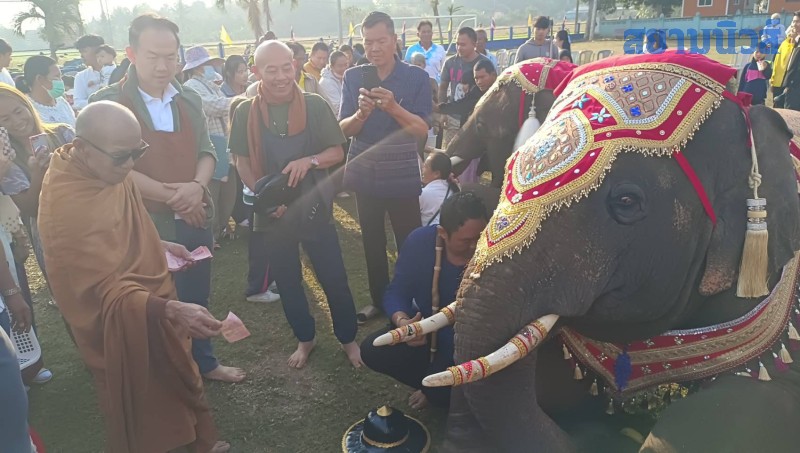 นอกจากนี้ ยังมีช้างอีกจำนวน 2 เชือก ร่วมเดินในขณะบิณฑบาตรกับหลวงพ่อ เพื่อนำรายได้ทั้งหมดมอบให้กับโรงเรียนบ้านค่ายหางเรียงอีกด้วย