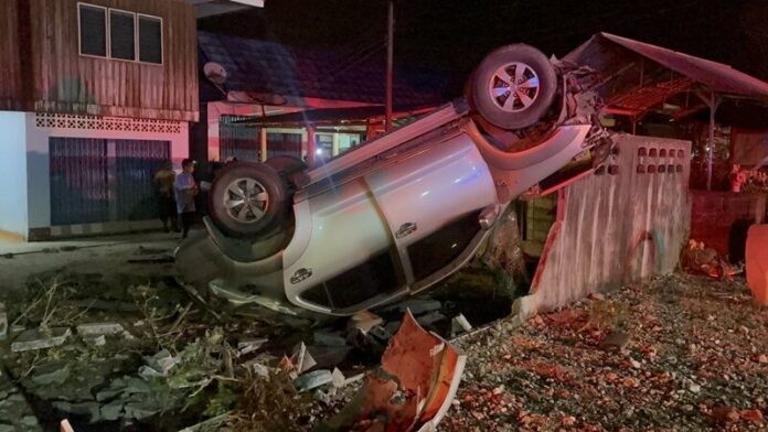 ในที่เกิดเหตุพบรถยนต์ โตโยต้า ฟอร์จูนเนอร์ หมายเลขทะเบียน ขน 9971 สงขลา เสียหลักพุ่งชนกำแพงบ้านของ อายุ 75 ปี ส่งผลให้กำแพงบ้านได้รับความเสียหาย โดยสภาพรถพลิกคว่ำหงายท้อง ล้อชี้ฟ้า ทราบชื่อผู้ขับขี่ อายุ 59 ปี โดยร่างผู้ขับขี่กระเด็นออกจากตัวรถ ไปอยู่บริเวณหน้าศาลพระภูมิหน้าบ้าน หลังเกิดเหตุเจ้าหน้าที่เข้าตรวจสอบพบว่า ผู้ขับขี่ไม่ตอบสนอง และเสียชีวิตในที่เกิดเหตุ