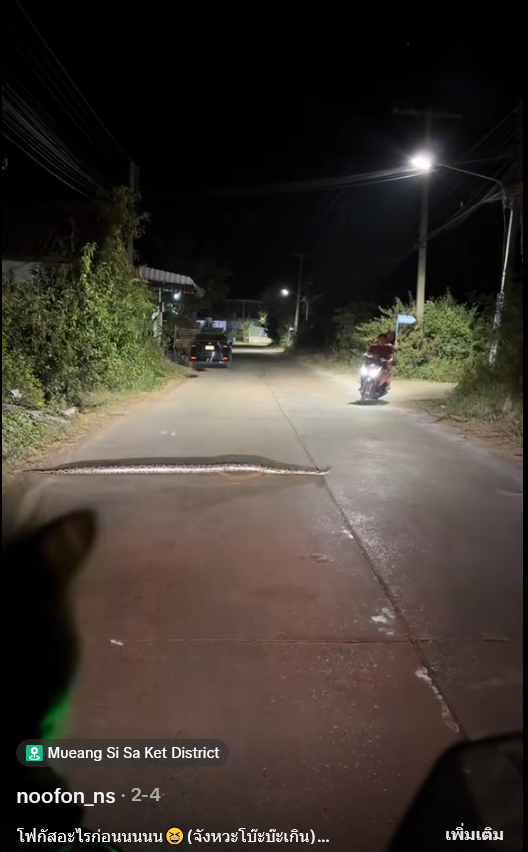 โดยคลิปดังกล่าวถูกเผยแพร่ผ่านแพลตฟอร์ม TikTok จากบัญชีผู้ใช้ @noofon_ns เผยให้เห็นภาพหญิงสาวกำลังขับรถเลี้ยวเข้าซอย แต่ต้องหยุดรถกะทันหัน หลังพบงูขนาดใหญ่กำลังเลื้อยตัดผ่านถนนอยู่พอดี เจ้าของรถเลือกจอดรอให้งูเลื้อยข้ามไปอีกฝั่งแทนการขับผ่าน เพื่อความปลอดภัยทั้งคนและสัตว์