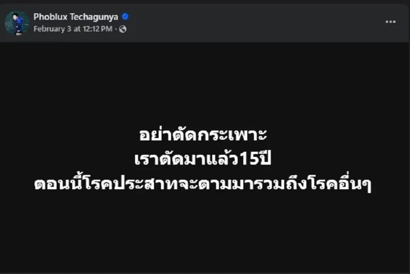 ก่อนหน้านี้ เพียงไม่กี่วัน เจ้าตัวได้ออกมาโพสต์ข้อความผ่านโซเชียลมีเดีย ระบุว่า