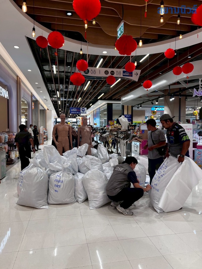 ผลการตรวจค้น พบสินค้าประเภทเสื้อผ้าที่ละเมิดเครื่องหมายการค้าของบริษัทชั้นนำต่าง ๆ เช่น เครื่องหมายการค้าของลาคอสท์ (LACOSTE) คริสเตียน ดิออร์ (CHRISTIAN DIOR) ไนกี้ (NIKE) อาดิดาส (ADIDAS) กุชชี่ (GUCCI) ชาแนล (CHANEL) หลุยส์ วิตตอง (LOUIS VUITTON) อันเดอร์ อาร์เมอร์ (UNDER ARMOUR) บาเลนเซียกา (BALENCIAGA) พูม่า (PUMA) โครมฮาร์ท (CHROME HEARTS) เบอเบอรี่ (BURBERRY) โปโล (POLO) และเดอะ นอร์ธ เฟส (THE NORTH FACE) เป็นต้น จำนวนประมาณ 21,000 ชิ้น มูลค่าความเสียหายประมาณ 8.4 ล้านบาท