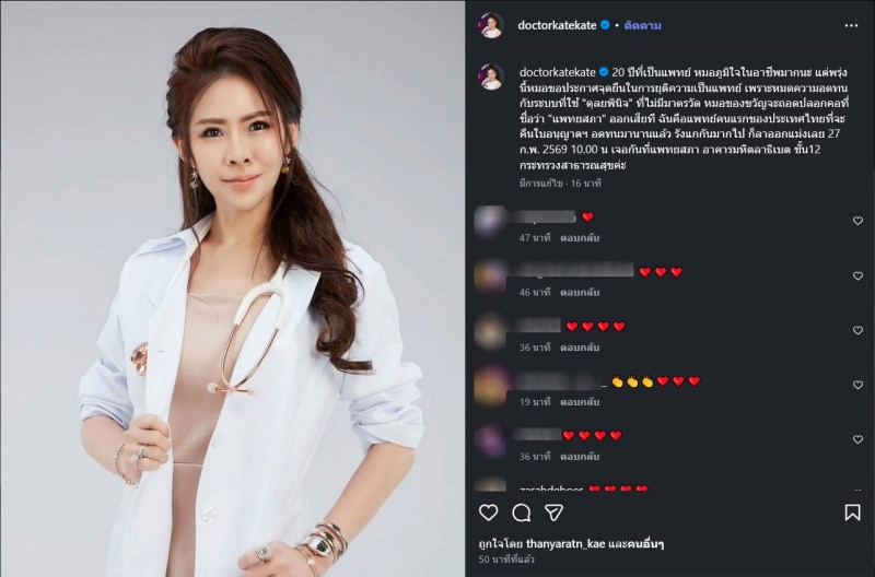 ฉันคือแพทย์คนแรกของประเทศไทยที่จะคืนใบอนุญาตฯ อดทนมานานแล้ว รังแกกันมากไป ก็ลาออกแม่งเลย 27 ก.พ. 2569 10.00 น. เจอกันที่แพทยสภา อาคารมหิตลาธิเบต ชั้น12 กระทรวงสาธารณสุขค่ะ