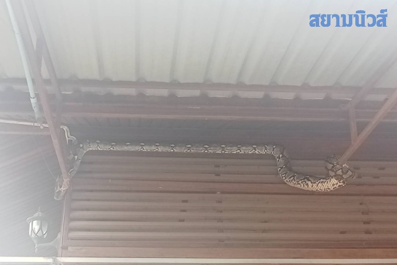 นางชไมพร เจ้าของบ้าน เปิดเผยว่า ขณะที่กำลังนั่งจิบกาแฟดูทีวีอยู่ในบ้าน ได้มีเสียงแตรรถดังขึ้นหลายครั้ง พร้อมเสียงตะโกนบอกว่ามีงูอยู่ใต้หลังคาบ้าน ตนจึงออกมาดูก็ถึงกับตกใจ เพราะเป็นงูเหลือมที่ตัวใหญ่มากรีบแจ้ง 191 ให้มาช่วยจับออกไป งูเหลือมที่พบในครั้งนี้เป็นตัวที่ 2 แล้ว ตัวแรกมาเกาะอยู่ที่รั้วข้างบ้าน แต่ได้เลื้อยหนีไปก่อน