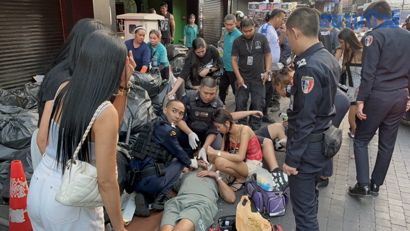 เมื่อเวลา 06.30 น. ( 5 มีนาคม 2569 ) ร.ต.อ.จิตติสุข สุธีนิทัศน์วงศ์ รอง.สวป.สภ.เมืองพัทยา ได้รับแจ้งว่ามีชาวต่างชาติก่อเหตุทะเลาะวิวาทกัน และมีผู้ได้รับบาดเจ็บ เหตุเกิดบริเวณกลางซอยถนนวอล์คกิ้งสตรีท พัทยาใต้ ม.10 ต.หนองปรือ อ.บางละมุง จ.ชลบุรี หลังรับแจ้งจึงนำกำลังสายตรวจ พร้อมด้วยหน่วยกู้ภัยมูลนิธิสว่างบริบูรณ์ฯเมืองพัทยา รีบรุดไปตรวจสอบ