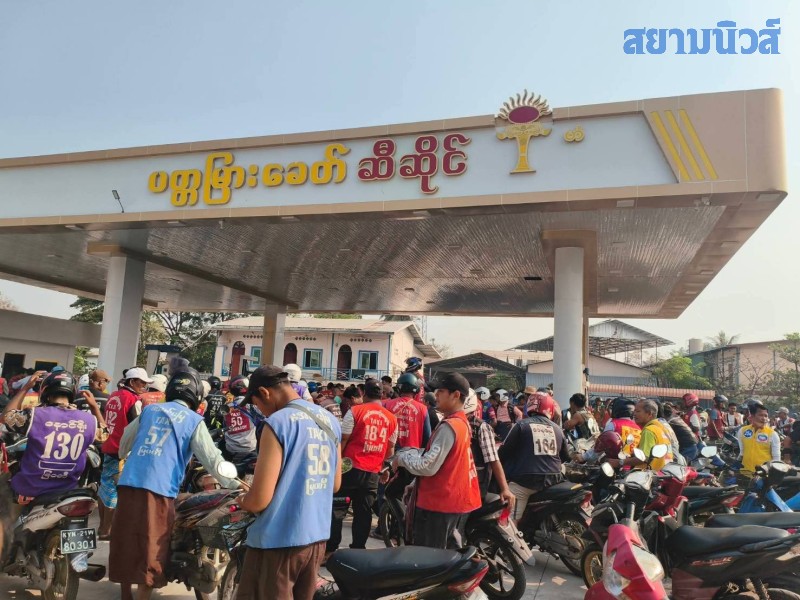 เป็นสาเหตุทำให้สถานีน้ำมันเชื้อเพลิงหลายแห่งในเมืองเมียวดี ต้องหยุดบริการเพราะน้ำมันหมด ขณะที่ปั้มบางแห่งมีน้ำมัน แต่ประชาชนต่างน้ำรถจักรยานยนต์ไปต่อคิวยาวเติมน้ำมันจำนวนมาก จนบริเวณหน้าปั้ม และภายในปั้มเต็มไปด้วยรถจักรยานยนต์ ขณะที่เจ้าของปั้มต้องออกมาใช้เครื่องขยายเสียงในการจัดระเบียบเพื่อให้บริการอย่างทั่วถึง เช่นการจำกัดปริมาณการเติม