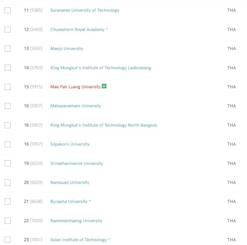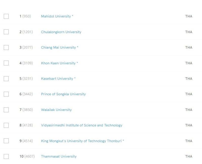 โดย 10 อันดับแรก มหาวิทยาลัยไทย มีดังนี้
