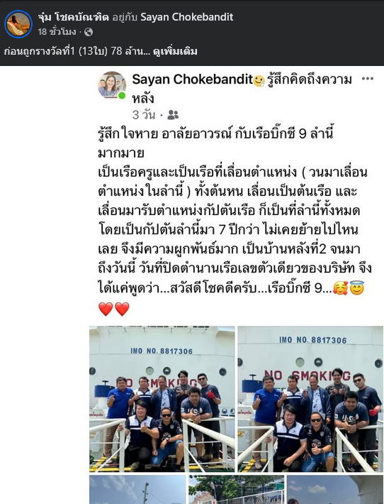 เจ้าตัวเปิดเผยว่า ทำงานเป็นกัปตันเรือ และเพิ่งขายเรือไปเมื่อไม่นานมานี้ จึงนำเลขของเรือลำดังกล่าวมาลุ้นโชค โดยตัดสินใจกดซื้อลอตเตอรี่ผ่านแอปพลิเคชันในช่วงเช้าของวันที่ 16 มีนาคม ก่อนการออกรางวัลเพียงไม่กี่ชั่วโมง