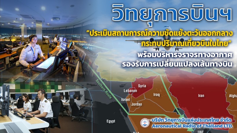 นายสุรชัย หนูพรหม รองกรรมการผู้อำนวยการใหญ่ รักษาการกรรมการผู้อำนวยการใหญ่ บริษัท วิทยุการบินแห่งประเทศไทย จำกัด (บวท.) เปิดเผยว่า จากสถานการณ์ความขัดแย้งในภูมิภาคตะวันออกกลาง ที่อาจส่งผลกระทบต่อเส้นทางบินระหว่างยุโรป ตะวันออกกลาง และเอเชีย รวมถึงปริมาณเที่ยวบินในประเทศไทย ซึ่งจากการติดตามข้อมูลการให้บริการจราจรทางอากาศในปัจจุบัน พบว่า มีผลกระทบต่อปริมาณเที่ยวบินในน่านฟ้าไทยอย่างมีนัยสำคัญ สายการบินต่าง ๆ ของภูมิภาคตะวันออกกลาง ยกเลิกเที่ยวบินมายังประเทศไทยแล้วกว่า 1,000 เที่ยวบิน นับจากเกิดเหตุการณ์ ตั้งแต่วันที่ 28 กุมภาพันธ์ 2569 จนถึงปัจจุบัน หรือคิดเป็นประมาณ 3 % ของปริมาณเที่ยวบินทั้งหมด โดยท่าอากาศยานสุวรรณภูมิมีการยกเลิกเที่ยวบินไปแล้วกว่า 600 เที่ยวบิน และท่าอากาศยานภูเก็ตกว่า 400 เที่ยวบิน นอกจากนี้ ยังมีท่าอากาศยานอื่น ๆ ที่มีการยกเลิกเที่ยวบิน ได้แก่ ท่าอากาศยานกระบี่ เชียงใหม่ และดอนเมือง