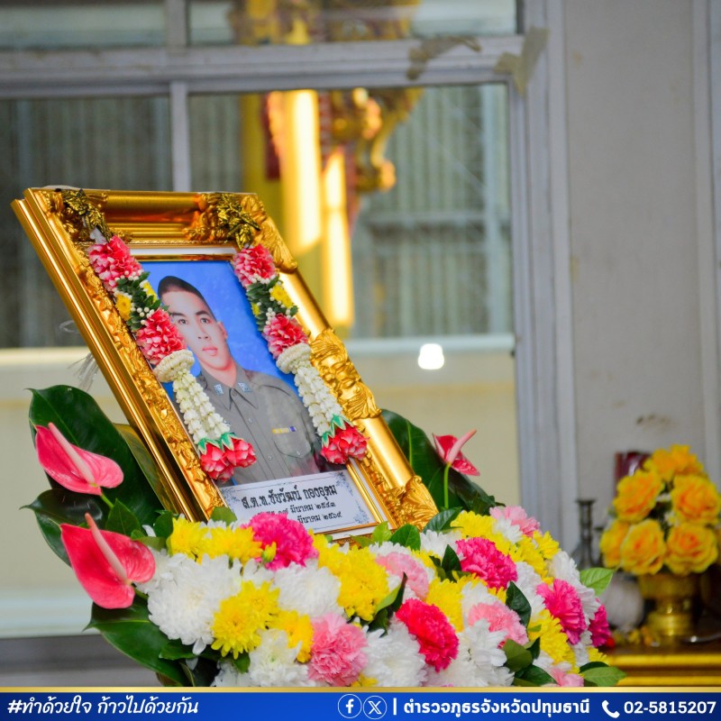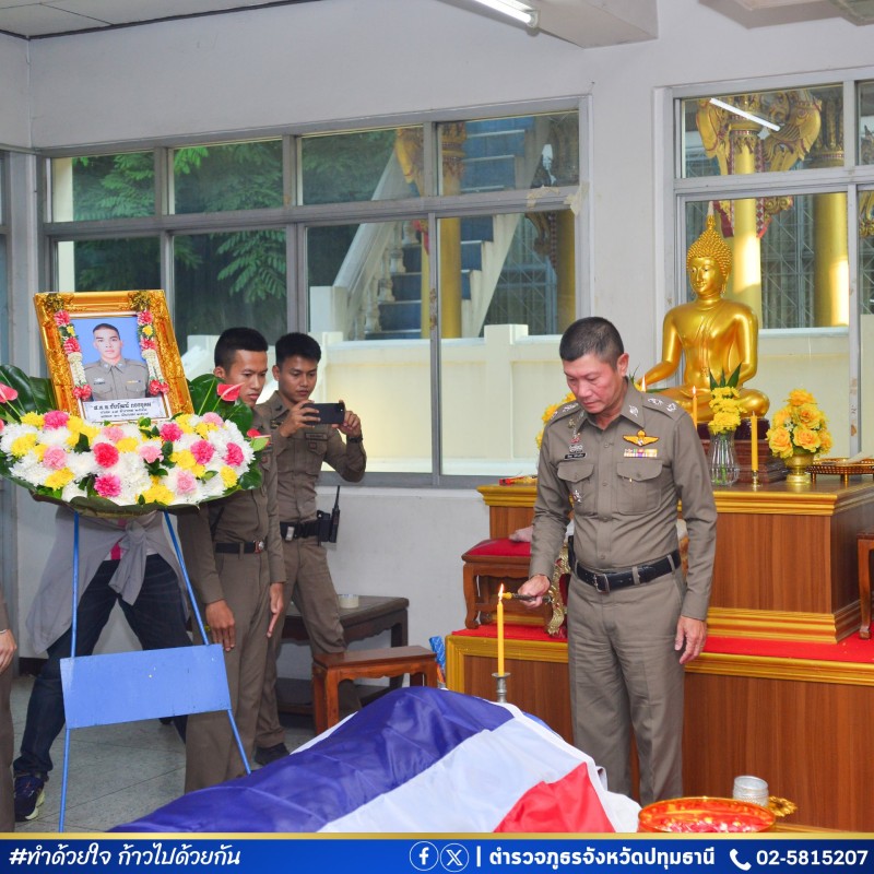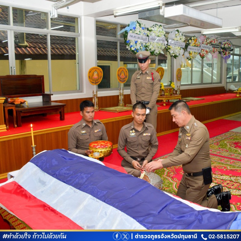 เมื่อเวลา 17.00 น.วันที่ 21 มีนาคม 2569 ที่ผ่านมา ที่วัดเขียนเขต พระอารามหลวง ตำบลบึงยี่โถ อำเภอธัญบุรี จังหวัดปทุมธานี พล.ต.ต.พีรพล โชติกเสถียร ผู้บังคับการตำรวจภูธรจังหวัดปทุมธานี เป็นประธานในพิธีรดน้ำศพ ส.ต.ท.ชัยวัฒน์ กองอุดม ผบ.หมู่ (ป.) สภ.ธัญบุรี ซึ่งเสียชีวิตจากอุบัติเหตุขณะปฏิบัติหน้าที่ไล่ติดตามรถบรรทุก 6 ล้อที่หลบหนีการเรียกตรวจ
