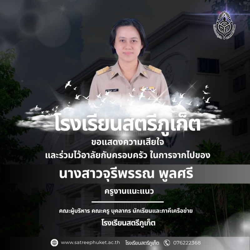 วันที่ 25 มีนาคม 2569 เกิดเรื่องเศร้าในแวดวงการศึกษาจังหวัดภูเก็ต หลังเพจเฟซบุ๊กอย่างเป็นทางการของโรงเรียนสตรีภูเก็ต โพสต์ข้อความพร้อมภาพไว้อาลัยต่อการจากไปของบุคลากรครูถึง 2 ท่านติดต่อกันภายในระยะเวลาเพียงไม่กี่วัน สร้างความโศกเศร้าให้กับบรรดาศิษย์เก่า ศิษย์ปัจจุบัน รวมถึงเพื่อนร่วมงานเป็นอย่างมาก