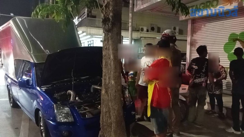 ที่เกิดเหตุพบรถกระบะตู้ทึบ ยี่ห้ออีซูซุ สีน้ำเงิน ทะเบียน 4 ฒช 3516 กรุงเทพมหานคร สภาพล้อหน้าปีนขึ้นฟุตบาท ตัวรถพุ่งชนอัดกับต้นไม้ข้างทางได้รับความเสียหายหนัก ภายในรถพบชายวัยรุ่นอายุประมาณ 20–25 ปี มีอาการตื่นตกใจ พูดจาวกวนจับใจความไม่ได้ โดยมีประชาชนและกลุ่มชายฉกรรจ์ยืนล้อมดูเหตุการณ์จำนวนมาก เจ้าหน้าที่จึงควบคุมตัวไปสอบปากคำเพิ่มเติมที่ สน.ทุ่งครุ