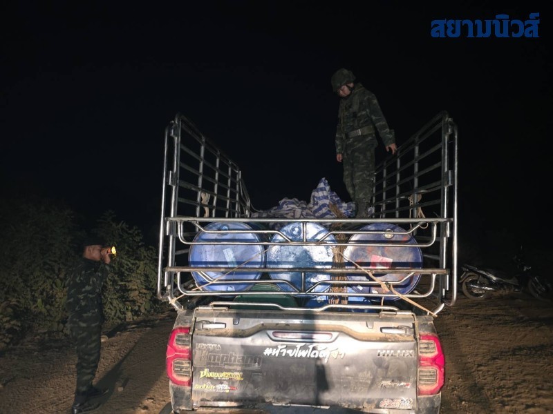 พบรถกระบะต้องสงสัย ก่อนเข้าตรวจสอบ เจอน้ำมันดีเซล จำนวน 10 ถัง ถังละ 200 ลิตร รวมกว่า 2,000 ลิตร