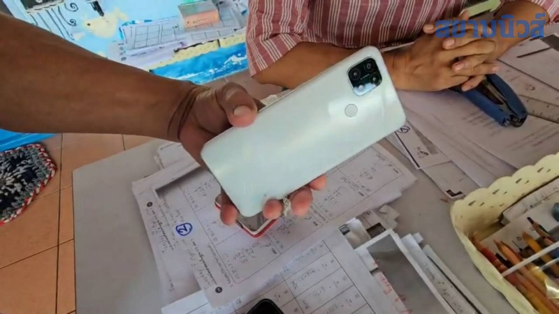 ในวันเกิดเหตุนั้นน้องจะนั่งอยู่ใกล้ๆ กับตนเอง ส่วนที่โทรศัพท์ไปโดนที่หัวเด็กแตกนั้นเกิดจากว่า ตนเองเตือนน้องว่าไม่ทำงาน และเด็กเกิดอาการปี๊ดใส่ ตนเองจึงได้หยิบโทรศัพท์ที่ไม่ได้ใส่เคสไปเคาะนิดๆ ที่หัว ประกอบกับเด็กหลบทำให้โทรศัพท์กระแทกไปที่หัว ซึ่งตนเองก็ไม่ได้ตั้งใจ เป็นเพียงต้องการสะกิดให้หยุด เพราะมือตนเองก็ตรวจงานเด็กคนอื่นๆ ไปด้วย ซึ่งที่ผู้ปกครองบอกว่า เด็กทำวิชาภาษาไทยผิดไป 3 ข้อนั้น ไม่ใช่ เนื่องจากว่าเมื่อวานเรียนวิชาคณิตศาสตร์