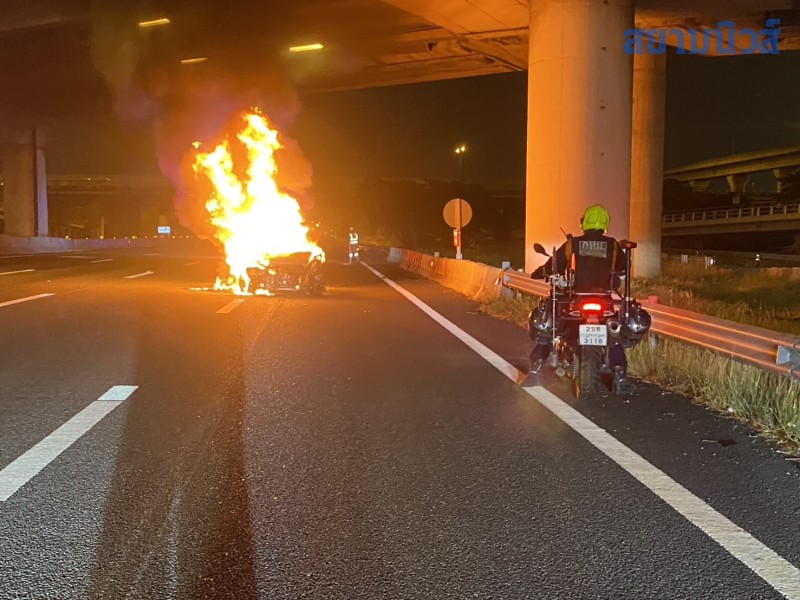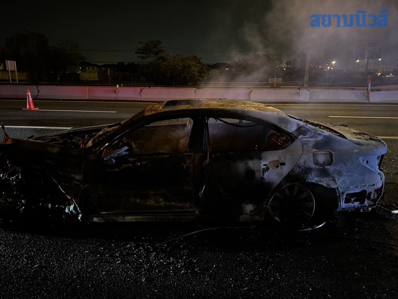 ที่เกิดเหตุเป็นถนน 4 เลน มุ่งหน้าเข้ากรุงเทพฯ บริเวณช่องทางจราจรซ้ายพบเพลิงลุกไหม้ รถยนต์ ยี่ห้อเล็กซัส สีขาว หมายเลขทะเบียน 4 ขว 1504 กรุงเทพมหานคร เจ้าหน้าที่จึงใช้น้ำฉีดประมาณ 15 นาทีเพลิงสงบ รถยนต์วอดทั้งคันเหลือแต่ซาก และมีผู้หญิงได้รับบาดเจ็บเล็กน้อย 1 ราย จึงทำการปฐมพยาบาล จากนั้นจึงเร่งเคลื่อนย้ายซากรถพ้นพื้นที่ช่องจราจรดังกล่าว