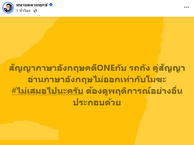 กระทั่งล่าสุด ด้าน ทนายเดชา ได้ออกมาเคลื่อนไหวต่อประเด็นร้อนดังกล่าว ด้วยการให้แนวคิดทางกฎหมาย ผ่านบัญชีเฟซบุ๊ก ทนายคลายทุกข์ โดยระบุว่า สัญญาภาษาอังกฤษคดี ONE กับ รถถัง คู่สัญญาอ่านภาษาอังกฤษไม่ออกเท่ากับโมฆะ ไม่เสมอไปนะครับ ต้องดูพฤติการณ์อย่างอื่นประกอบด้วย