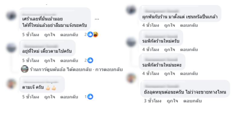 ภายหลังโพสตืดังกล่าวได้เผยเเพร่ออกไปงานนี้ทำเอาแฟน ๆ นักอ่านหลายคนเข้ามาคอเมนต์ทันทีเพราะต่างก็เสียดายและใจหายไปพร้อม ๆ กัน อาทิ เศร้าเลยที่มั่นเม้าท์มอย ได้ที่ใหม่แล้วอย่าลืมมาแจ้งนะครับ อยู่ที่ใหม่ เดี๋ยวตามไปครับ ตามเจ๊ ครับ ยังอุดหนุนต่อนะครับ ไม่ว่าจะขายทางไหน บ้างก็ว่า ผูกพันกับร้านมาตั้งแต่เซนทรัลปิ่นเกล้า และหลายคนก็บอกว่า รอพิกัดร้านใหม่ เป็นต้น