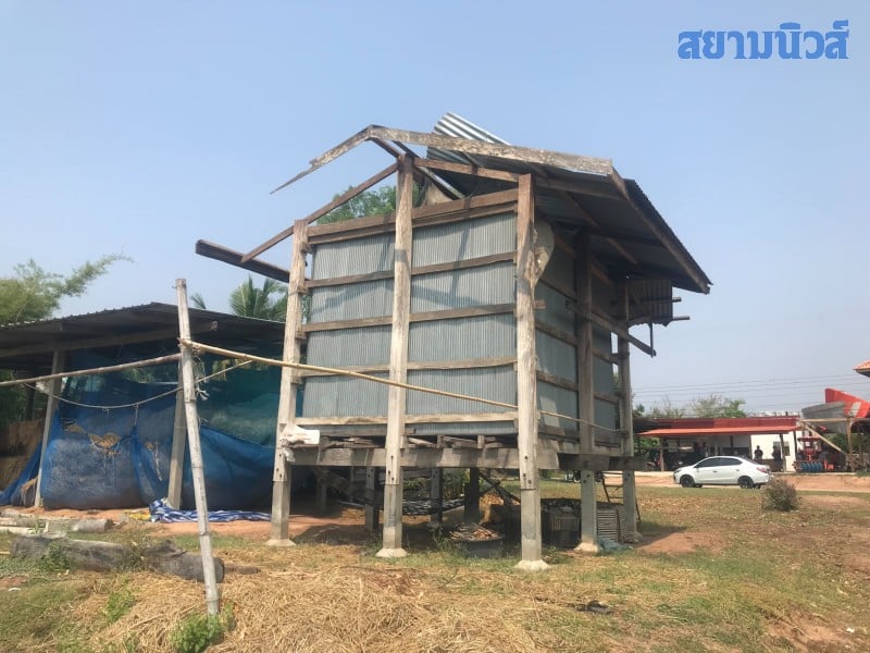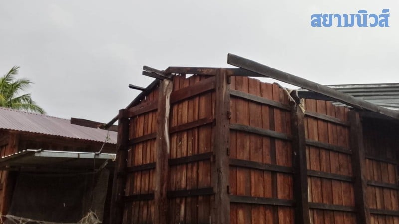 ด้านนางคำพอง ยูนาน อายุ 51 ปี (เสื้อชมพู) อยู่บ้านเลขที่ 20/1 บ้านธรรมราช หมู่ที่ 2 ตำบลสะกาด อำเภอสังขะ จังหวัดสุรินทร์ ชาวบ้านบ้านธรรมราช เล่าว่า ขณะเกิดเหตุมีสมาชิกในครอบครัวอยู่ภายในบ้านรวม 5 คน กำลังเตรียมรับประทานอาหาร ได้ยินเสียงลมพัดรุนแรงจึงรีบหลบเข้าภายในบ้าน โดยบ้านได้รับความเสียหาย หลังคาบ้านและยุ้งข้าวถูกพัดพังเสียหายทั้งหมด