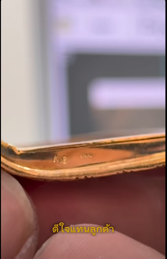 ก่อนที่ผู้เชี่ยวชาญของร้านจะทำการตรวจวัดและยืนยันว่าเป็นทองคำแท้ 18K พร้อมทั้งตรวจสอบรหัสตอก “K18” อย่างละเอียด ซึ่งผลลัพธ์ดังกล่าวสร้างความดีใจอย่างมากให้กับทั้งลูกค้าและผู้ตรวจสอบ