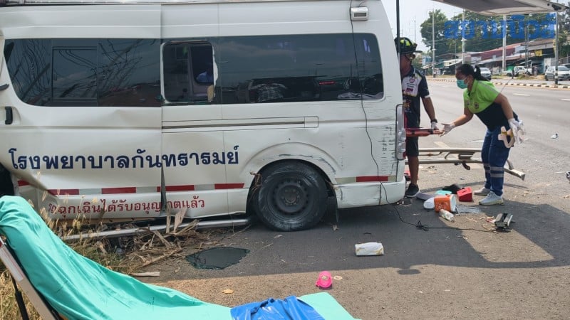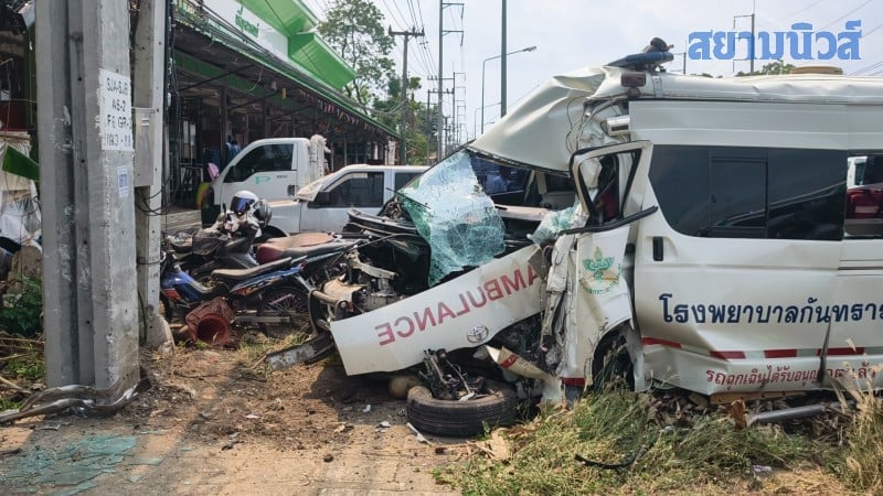 เมื่อเวลา 13.30 น. ของวันที่ 21 เมษายน 2569 พันตำรวจโท อัครพงษ์ เทเวลา สารวัตร (สอบสวน) สภ.เมืองศรีสะเกษ ได้รับแจ้งเหตุรถพยาบาลประสบอุบัติเหตุเสียหลักพุ่งชนเสาไฟฟ้าและรถจักรยานยนต์ริมถนน บนทางหลวงหมายเลข 226 สายศรีสะเกษ-กันทรารมย์ บริเวณหน้าโรงเรียนไกรภักดีวิทยาคม ตำบลโพธิ์ อำเภอเมือง จังหวัดศรีสะเกษ จึงได้ประสานงานกับหน่วยกู้ภัยสว่างจิตศรีสะเกษธรรมสถาน หน่วยกู้ชีพจากมูลนิธิเพชรเกษมศรีสะเกษ และเจ้าหน้าที่โรงพยาบาลศรีสะเกษ เพื่อเร่งรัดเข้าตรวจสอบและให้การช่วยเหลือผู้ประสบเหตุ