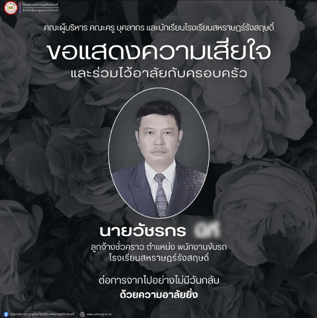 ขณะเดียวกันด้านเพจเฟซบุ๊ก กลุ่มบริหารงานบุคคล โรงเรียนสหราษฎร์รังสฤษดิ์ ได้ออกมาโพสต์แสดงความอาลัยต่อการจากไปของบุคลากรในครั้งนี้ โดยระบุว่า คณะผู้บริหาร คณะครู บุคลากร และนักเรียนโรงเรียนสหราษฎร์รังสฤษดิ์ ขอแสดงความเสียใจและร่วมไว้อาลัยกับครอบครัว นายวัชรกร ลูกจ้างชั่วคราว ตำแหน่ง พนักงานขับรถ โรงเรียนสหราษฎร์รังสฤษดิ์ ต่อการจากไปอย่างไม่มีวันกลับ ด้วยความอาลัยยิ่ง ขอให้นายวัชรกร ไปสู่สัมปรายภพที่ดีและขอเป็นกำลังใจให้กับครอบครัวของนายวัชรกร ต่อไป