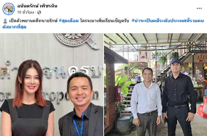 เมื่อวันที่ 26 เมษายน 2569 มีรายงานว่า นายอนันตรักษ์ เพ็ชรหิน ทนายความชื่อดังได้ออกมาโพสต์รูปภาพพร้อมกับข้อความ ผ่านบัญชีเฟซบุ๊ก อนันตรักษ์ เพ็ชรหิน โดยระบุว่า เปิดตัวพยานคดีทนายรักษ์ สุดเดือด ใครจะมาเพิ่มเรียนเชิญครับ น่าจะเป็นคดีระดับประเทศที่รวมคนดังมากที่สุด