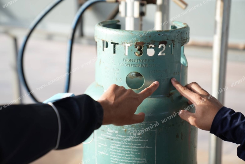 3) ถังบรรจุก๊าซทำด้วยโลหะเครื่องหมายการค้าของ ปตท.จำนวน 630 ถัง
