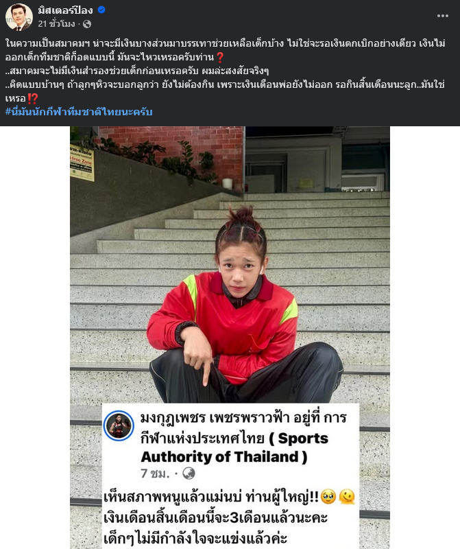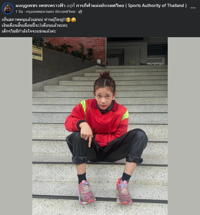 เมื่อวันที่ 19 พฤศจิกายน 2568 มีรายงานว่า อริศรา นุ่นเอียด นักมวยหญิงดีกรีแชมป์มวยหญิงเวทีราชดำเนิน รุ่น 54 กก. ตัวแทนทีมชาติไทย ชุดลุยซึกซีเกมส์ ครั้งที่ 33 ที่ประเทศไทยเป็นเจ้าภาพ ระหว่างวัยที่ 9-20 ธันวาคมนี้ ได้ออกมาโพสต์ข้อความผ่านเฟซบุ๊ก มงกุฎเพชร เพชรพราวฟ้า โดยระบุว่า เห็นสภาพหนูแล้วแม่นบ่ ท่านผู้ใหญ่ เงินเดือน สิ้นเดือนนี้จะ 3 เดือนแล้วนะคะ เด็ก ๆ ไม่มีกำลังใจจะแข่งแล้วค่ะ