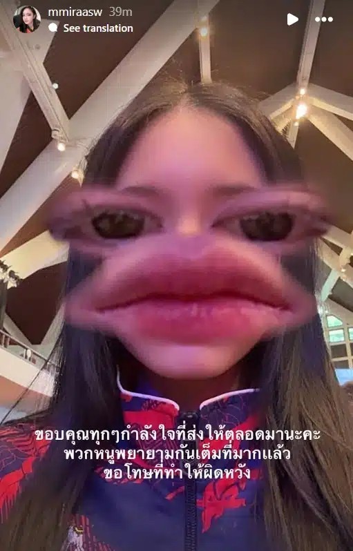 ส่วน Sulila Aiamsuwan หรือ THA_SULILA ก็ได้โพสต์สตอรี่อินสตาแกรมเช่นกัน โดยระบุว่า ขอบคุณทุก ๆ กำลังใจที่ส่งให้ตลอดมานะคะ พวกหนูพยายามกันเต็มที่มากแล้ว ขอโทษที่ทำให้ผิดหวัง