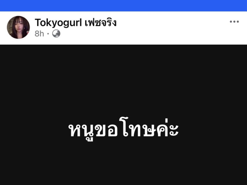 ล่าสุด Tokyogurl ได้ออกมาโพสต์แล้ว โดยระบุว่า หนูขอโทษค่ะ