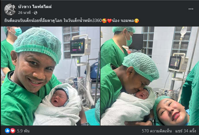 แห่ยินดีกันเพียบ หลังเพจเฟซบุ๊ก บัวขาว ไลฟสไตล์ ได้โพสต์ภาพของ นักมวยชื่อดัง บัวขาว บัญชาเมฆ พร้อมระบุข้อความว่า ยินดีตอนรับเด็กน้อยที่ลืมตาดูโลก ในวันเด็กน้ำหนัก 3360 น้อง จอมพล