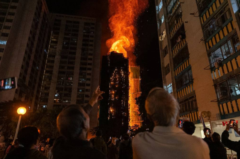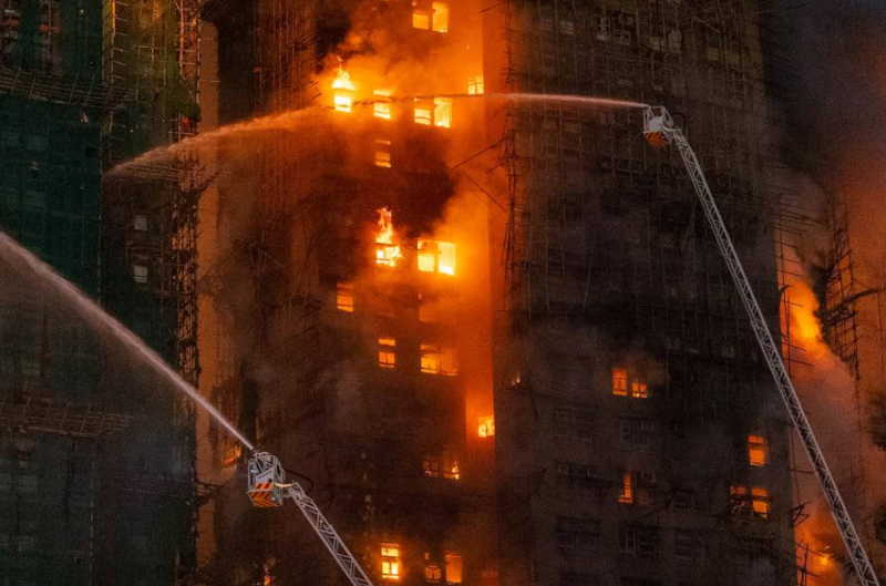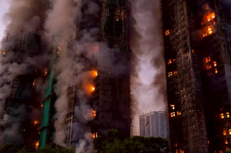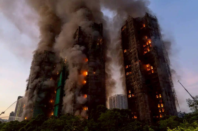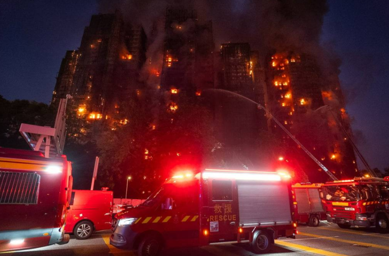 หลายชั่วโมงหลังจากที่เพลิงเริ่มไหม้ในเขตไท่โปทางตอนเหนือของเมือง เปลวไฟและกลุ่มควันหนาทึบยังคงปกคลุมอาคารสูง 32 ชั้น ซึ่งเชื่อว่ามีผู้คนจำนวนมากติดอยู่ข้างใน ในขณะที่ทีมกู้ภัยระดมพลเดินทางไปยังที่เกิดเหตุ