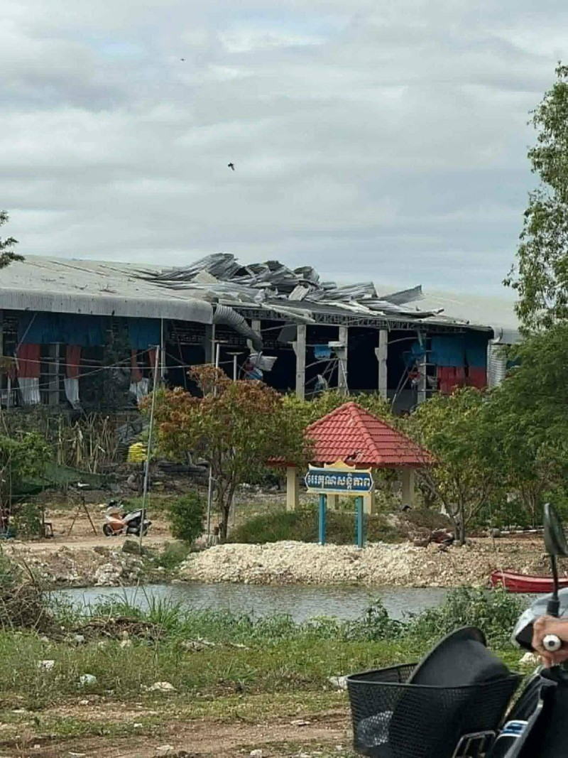 โดยก็มีอีกภาพที่บางส่วนของค่าย ตชด.เขมรพังเสียหายเช่นกัน (ผมเข้าใจว่าทิ้ง 2 ลูกหรือเปล่า)