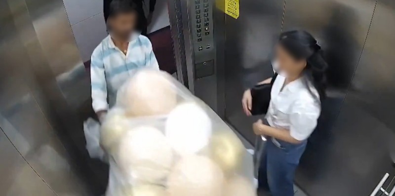 ภาพจากวิดีโอแสดงให้เห็นหญิงคนหนึ่งเข็นกระเป๋าขนาดเล็กเข้าไปในลิฟต์ ก่อนที่ชายอีกคนจะเดินตามเข้ามาพร้อมลูกโป่งวันเกิดจำนวนมากบรรจุในถุงพลาสติก เพียงไม่กี่วินาทีหลังประตูลิฟต์ปิด ลูกโป่งเกิดไฟลุกไหม้อย่างฉับพลันและนำไปสู่แรงระเบิดภายในพื้นที่จำกัด เปลวไฟพุ่งขึ้นจนบดบังกล้องชั่วขณะ ก่อนประตูจะเปิดออก และทั้งหญิงสาวกับชายขนลูกโป่งรีบวิ่งหนีออกมา